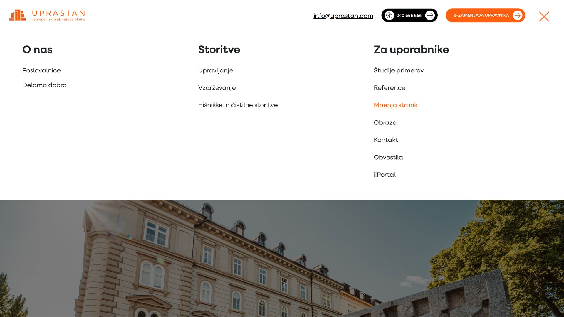 UPRA-STAN je podjetje, specializirano za upravljanje stavb, ki združuje dolgoletne izkušnje in zaupanje lastnikov nepremičnin. Prenovljena spletna stran postavlja uporabnike v ospredje – s premišljenim dizajnom, jasnimi informacijami in digitalno izkušnjo, ki odraža profesionalnost podjetja.